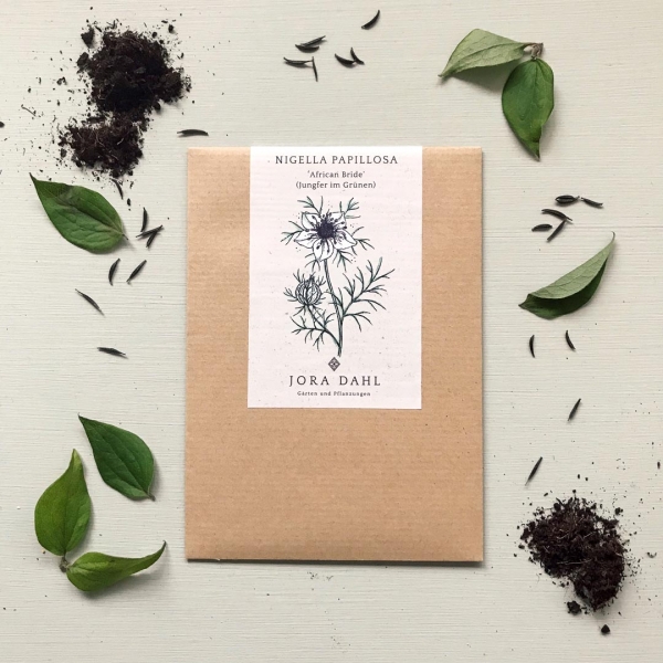 Nigellas sind sehr filigrane und zugleich äußerst robuste Schnittblumen. Einfach anzusäen halten sie besonders lange in der Vase. Die Kapselfrüchte lassen sich zudem trocknen und in Gestecken verarbeiten. „African Bride“ besticht durch eine elegante Blüte in Reinweiß. Cool Flower für Ansaat im August/September für wunderschöne Herbstblumen oder im Frühling.