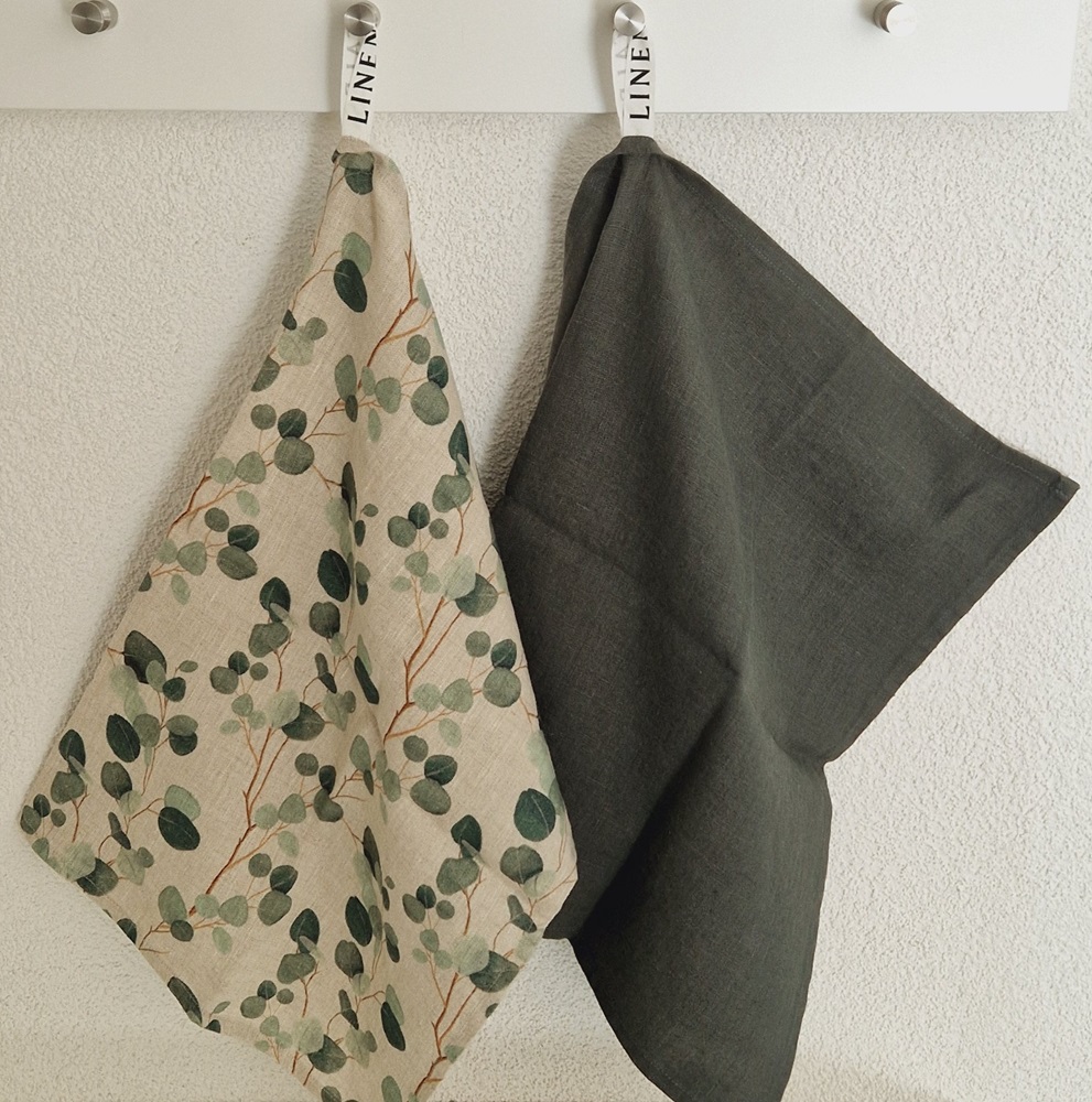 Mobile Preview: Leinen Geschirrtuch Eucalyptus on Natural, 45 x 65 cm - Linen Tales